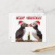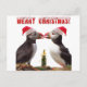 Feliz Navidad con dos divertidos bífalos con sombreros de santa roja y besando
