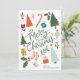 Prepárate para difundir algunas alegrías de vacaciones con esta brillante y festiva tarjeta de Feliz Navidad! Este diseño presenta el saludo de Feliz Navidad a mano en el medio, enmarcado por árboles de navidad, adornos, caramelos, caramelos y regalos. Esta tarjeta es la manera perfecta de traer alegría y calidez a su familia y seres queridos esta temporada de vacaciones.