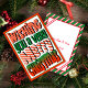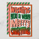 Esta es una cédula festiva en franjas rojas de caña de caramelo verde y dulce diciendo Deseándote una Feliz Navidad. Es muy atrevido. La parte posterior es todo editable. Esta tarjeta de ejemplo dice: De nuestro hogar a el tuyo, La familia Henderson 2024