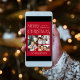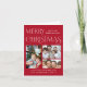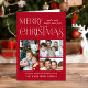 Elegante tarjeta de felicitación de fotos de vacaciones plegadas rojas con "Feliz Navidad" en elegante tipografía blanca vintage, "feliz año nuevo" y un saludo en moderna tipografía blanca, tres de tus fotos familiares favoritas y tu nombre. Personaliza tu mensaje de temporada en el interior.