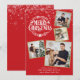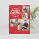 Un diseño elegante de collage de 4 fotos para las fiestas para que lo personalices con tus fotos favoritas enmarcadas en dorado, mensaje, nombres y año. El reverso presenta copos de nieve que caen. Puedes personalizar el color de fondo para que coincida con el tema de tus fiestas. Diseñado por Thisisnotme©