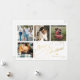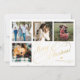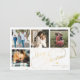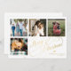 Elegante y elegante guión de caligrafía clásica de Faux Christmas de oro de cuatro fotos familiares cuadradas simple tarjeta blanca de vacaciones con tu personalizado de texto personalizado en ambos lados. ++++++++ OBSERVE que el color de fondo es modificable. Puede cambiarlo después de seleccionar la opción PERSONALIZAR debajo del menú PERSONALIZAR TI. Si no se siente a gusto cambiándolo, por favor pida ayuda a Zazzle Live Design Service o al diseñador.