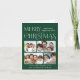 Elegante tarjeta plegada de vacaciones verdes con "Feliz Navidad" en elegante tipografía blanca de época, "feliz año nuevo" y un saludo en tipografía blanca moderna, 4 de tus fotos y tu nombre. Personalice su mensaje de temporada a la familia y amigos que están en el interior.