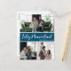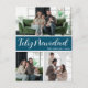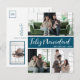 Esta fabulosa postal de 4 festividades fotográficas con "Feliz Navidad!" en un alfabeto moderno y su nombre familiar y año en un tipográfico tipográfico tradicional, ambos en blanco sobre verde azulado, es perfecta para enviarlos a su familia y amigos. ¡A todos les encantará conseguir nuevas fotos de su familia! El mensaje de la fiesta es personalizable.