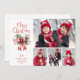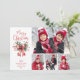Envíe saludos MERRY CHRISTMAS esta temporada navideña con una tarjeta de felicitación fotográfica con 4 fotos y una tipografía moderna de caligrafía de moda para el saludo acentuado con una acuarela de color rojo arco y holly. ASISTENCIA: Para obtener ayuda con la modificación o personalización del diseño, el redimensionamiento, la transferencia del diseño a otro producto o si desea coordinar elementos, póngase en contacto con el diseñador ANTES DE PEDERLO a través de la pestaña MENSAJE de charla de Zazzle o envíe un correo electrónico a makeitaboutyoustore@gmail.com.