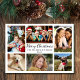 Sencilla y moderna tarjeta de vacaciones de collage de fotos con "Feliz Navidad" en un guión elegante, 6 fotos de tus personajes y momentos favoritos del año pasado y tu nombre familiar y el año.