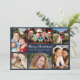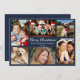 Tarjeta navideña azul oscuro, sencilla y moderna, con "Feliz Navidad" exhibida en un elegante guión blanco, un collage de fotos de tus personajes y momentos favoritos del año pasado y tu nombre familiar y el año.