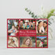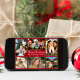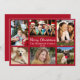 Sencilla y moderna tarjeta de festividad roja de collage fotográfico que presenta "Feliz Navidad" en un elegante guión blanco, 6 fotos de tus personajes y momentos favoritos del año pasado y tu apellido y el año en tipografía blanca.