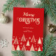 Feliz Navidad tarjetas de fondo rojo con árboles de Navidad estilizados beige y copos de nieve plantilla estilo retro de medio siglo invitación descarga instantánea