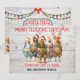 Esta caprichosa y divertida tarjeta de Navidad será una favorita de tus amigos y familiares. Hay 5 pollos en el frente que llevan luces de Navidad envueltas alrededor de ellos, sombreros de Santa y uno con cuernos de reno. El fondo es una vieja cerca rústica. La tipografía dice Feliz Navidad Clucking De nuestro gallinero al suyo, luego la personalizas con el nombre de tu familia o nombres. El reverso de la tarjeta es una pequeña sorpresa divertida. Hay un letrero que dice North Pole Milk & Cookie Co. Horneando Fresco Diariamente Desde 1847. Arriba hay luces de Navidad y un lazo colgado en la parte superior. En la parte inferior hay un pollo enloquecido que dice "¡Squawk! ¡Olvidé sacar las galletas del horno!". Una tarjeta divertida para amantes de los pollos, criadores de pollos