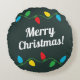 Una almohada decorativa de Navidades redondos con luces navidades y una escritura de "Feliz Navidad". Puede cambiar el texto para reemplazarlo por el suyo propio. Esta almohada de forma única añade un toque de alegría a la decoración de la casa de los navidades.