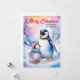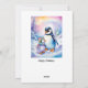 Tarjeta de vacaciones para navidades con pingüinos de color agua en un paisaje invernal, con el saludo personalizable "Feliz Navidad". Foto de personalizable y mensaje en la parte de atrás.