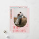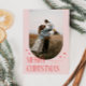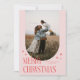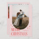 Extraordinaria y mínima tarjeta fotográfica navideña con un marco rosado en arco con un texto tipográfico que dice "Feliz Navidad". Puedes añadir un total de 3 fotos en esta tarjeta en la parte delantera y trasera.