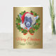 Hermosa pintura de este Adorable bebé de cabra pigmea -Ella usando un sombrero de Papá Noel rodeado por Navidades festivos, correa todo con un fondo de oro que fácilmente puede ser removida para revelar un fondo blanco si lo deseas- dentro de una granja de Navidades rodeada por los mismos Navidades corona y personalizable dentro del sentimiento - Tarjetas de Navidades cabras para los amantes de cabras para mandar como una tarjeta de Navidad única. Feliz Navidad - © Original arte de Navidad. GetYerGoat.com, una cabrera
