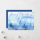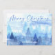 Envíe sus más sentidos deseos de vacaciones con esta serena tarjeta de Navidades acuáticos con un bosque nevado en tonos azules tranquilizadores. La parte delantera muestra un guión elegante que dice "Feliz Navidad" sobre un apacible paisaje de pinos, con espacio debajo para el nombre de tu familia. La parte posterior es totalmente personalizable: agregue su propio saludo de vacaciones o utilice el mensaje estacional proporcionado para una tarjeta pulida y lista para enviar. Una hermosa manera de compartir alegría, paz y amor esta temporada de Navidades.