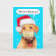 Es realmente difícil hablar con una mascarilla como muestra este cachorro mientras intenta decir ¡Feliz Navidad! Envía deseos navideños con esta ternura de Labrador con un sombrero de Santa que simplemente no puede pronunciar bien sus palabras