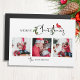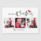 Este exclusivo y festivo diseño de vacaciones cuenta con tres plantillas de fotos cuadradas, texto editable y un divertido saludo de caligrafía navideña adornado con coloridos botánicos de invierno y un cardenal rojo dulce.