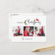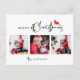 Este exclusivo y festivo diseño de vacaciones cuenta con tres plantillas de fotos cuadradas, texto editable y un divertido saludo de caligrafía navideña adornado con coloridos botánicos de invierno y un cardenal rojo dulce. La parte posterior incluye gráficos complementarios y campos de texto adicionales.