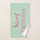 Los gnomos de invierno son adorables y se incluyen en esta toalla de baño de texto de barro de dulce de Feliz Navidad con fondo de punto de polka verde. Las toallas de baño, el lavabo y la toalla de mano se pueden comprar por separado de la deseada.