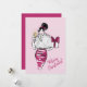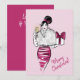 Ilustración de moda bellamente dibujada sobre un fondo rosa. Con una copa de champán en una mano y un regalo de Navidad en la otra, le gustaría celebrar la Navidad con usted y brindar por un feliz año nuevo.