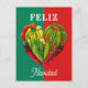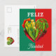 Foto de varios tipos de pimientos de chile rojo, amarillo y verde caliente formando un corazón con fondo verde y rojo, representando la bandera mexicana con texto editable 'Feliz Navidad', y un mensaje adecuado en la parte posterior en español, con nombres editables y dirección.