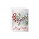 Feliz tarjeta de felicitación navideña con una rama con bayas rojas. Se puede personalizar, agregar el texto o nombre y la fecha en la parte posterior de la tarjeta.