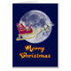 Una alegre tarjeta de Navidades que muestra a Santa Claus montando en el trineo tirado por un reno. Están volando más allá de la luna llena en el cielo. Una buena carta para decir Felices vacaciones a amigos y familia.