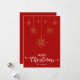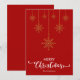 Feliz Navidad en rojo con un elegante diseño de copos de nieve dorados colgantes y letra decorativa. Esta tarjeta de Navidad de fondo rojo está diseñada para que puedas cambiar el color del fondo y también ingresar el nombre de tu familia o eliminarlo si deseas tener solo el diseño sin el texto. También puedes personalizar el color de las palabras "Feliz Navidad" editando este diseño si lo deseas.