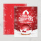 La tarjeta de Navidades rojos modernos con deseos de vacaciones en la parte trasera de la tarjeta.