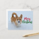 Esta hermosa tarjeta postal de los Navidades Corgi incluye una foto bonito de invierno de un Corgi galés rojo y blanco con cola, parado en la nieve junto a una tipografía elegante que lee Feliz Navidad. Adorables postales de vacaciones para un amante del perro.