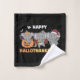 Feliz Hallothanksmas - feliz Halloween, Día de Acción de Gracias y Navidades. El elefante está vestido de murciélago en Halloween. Con una tarta para el día de Acción de Gracias, decorada con la gorra de Santa en los Navidades.