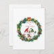 Feliz Navidad de nuestro Gnome al suyo con pareja de gnomos en una corona en una tarjeta de vacaciones. Perfecto para enviar una tarjeta única a su familia y amigos.