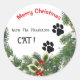 Adecuados saludos de Navidad del sticker/sello de sobre de gato para correspondencia de fiestas, regalos, tarjetas y más. Características huellas de patas lindas y corona de vegetación en el sticker redondo clásico. Se puede editar para leer Felices Fiestas o Saludos de la Temporada.