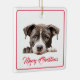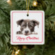 Feliz Navidad desde el ornamento de cerámica de perro. Un divertido adorno navideño para saludos navideños del perro para familia y amigos. Personalice en la parte de atrás. Dulce cachorro delante.