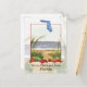 Feliz Navidad desde Florida con un ilustracion acuarela de una tranquila playa de invierno bajo un suave cielo gris de invierno acentuado con una rama de bayas rojas de invierno y la mano de estado pintada con acuarela. Excelente manera de enviar deseos de vacaciones a amigos, familia, amigos, clientes o clientes.