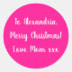 Navidades pegatina de etiquetas de regalo en la tendencia rosa caliente, con el mensaje Merry Christmas Love Mom xxx en tipografía/ escritura blanca. Simplemente cambia el nombre de Alejandría al nombre de tu ser querido, en el cuadro de texto personalizar este nombre. ¿Desea realizar más cambios? Todo el texto se puede personalizar. O si desea cambiar el color, simplemente haga clic en la herramienta de diseño y seleccione el color de fondo que desea. Haz que envolver regalos sea mucho más fácil este año con estos modernos pegatinas personalizados de etiquetas de regalo. Si necesita ayuda con la personalización, productos coincidentes o para un diseño personalizado, póngase en contacto conmigo a través de zazzle chat o correo electrónico: ursuladawnmoon@gmail.com