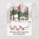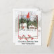 Saludos navideños de Nuevo Hampshire con un ilustracion acuarela de una acogedora casa de campo en un paisaje nevado con altos árboles de invierno acentuados con una rama de muros rojos y la mano de forma estatal pintada con acuarela. Excelente manera de enviar deseos de vacaciones a amigos, familia, amigos, clientes o clientes.