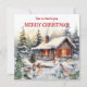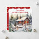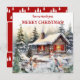 Feliz Navidad desde la tarjeta de vacaciones plana de la cabina. Diversión de invierno en la tarjeta de vacaciones plana de la cabina. Patinando en la cabaña. ¡Construyendo hombres de nieve, familia, amigos, niños! ¡De eso se trata todo el día festivo! Feliz Navidad!