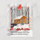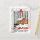 Feliz saludos navideños de Maine con una cabaña en un bosque de grandes árboles y grandes rocas acentuadas con una rama de bayas rojas de invierno y la mano de estado pintada con acuarela. Excelente manera de enviar deseos de vacaciones a amigos, familia, amigos, clientes o clientes.