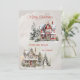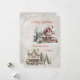 Feliz Navidad de nuestra casa a la tuya de dos hermosas casas de estilo victoriano ambientadas en escenas de invierno rodeadas de árboles de Navidad