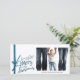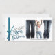 Feliz Navidad Desde Nuestro Hogar A Su Tarjeta De Foto. Una carta de vacaciones simple y hermosa, de color blanco, azul verde azulado y verde oscuro con acento de cinta. Moderno, elegante y usted puede personalizar con su propia foto y personalizar el texto con su propio nombre familiar. ¡La personalización es fácil de hacer! Diseño del Emporium de Jenn.