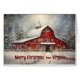 Un gran granero rojo se para majestuosamente en una brillante noche invernal en la parte delantera de esta tarjeta de Navidades. Un camino cubierto de nieve conduce a una puerta de granero abierta. El texto en rojo oscuro al final dice actualmente "Feliz Navidad desde Virginia", pero puede cambiarse a lo que quieras, como también el texto en el interior.