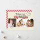¡Te deseamos una Feliz Navidad! Esta tarjeta fotográfica de vacaciones muestra un mensaje clásico en una divertida tipografía al estilo de Candy Cane sobre un simple fondo blanco. Con un set de 3 fotos en la parte delantera, esta tarjeta de vacaciones es una excelente manera de enviar Navidades a todos tus amigos y familia. La parte trasera está decorada con un estilo de cane de golosinas rojo y blanco a juego.