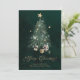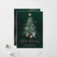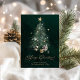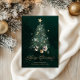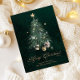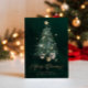 Envía cálidos deseos navideños con esta elegante tarjeta de Navidad que presenta un árbol de hoja perenne bellamente ilustrado adornado con estrellas doradas y rodeado de regalos. La escritura “Feliz Navidad” en dorado brillante añade un toque de lujo y encanto festivo — perfecto para amigos, familiares o clientes.