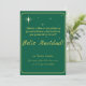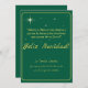 Celebra el verdadero significado de la Navidad con esta tarjeta plana de fiesta de Luke 2:14 Verso Feliz Navidad Verde y Dorado. Con un rico fondo verde adornado con texto dorado brillante y delicados acentos de estrellas, esta elegante tarjeta transmite la belleza y la paz de la temporada navideña. La parte delantera muestra las inspiradoras escrituras de Lucas 2:14: “¡Gloria a Dios en las alturas y paz en la tierra a los hombres que gozan de su favor!” con "Feliz Navidad" resaltado en letras festivas y en negrita.