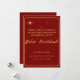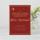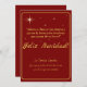 Celebra la alegría de la Navidad con la Tarjeta Plana de Fiesta con el verso Lucas 2:14 Feliz Navidad Rojo Intenso y Dorado. Situada sobre un fondo rojo intenso rico, este diseño presenta texto dorado elegante y acentos de estrellas brillantes, creando una apariencia cálida y festiva. La tarjeta destaca las inspiradoras escrituras de Lucas 2:14: “¡Gloria a Dios en las alturas y paz en la tierra a los hombres que gozan de su favor!”, junto con un sincero saludo de "Feliz Navidad".