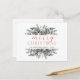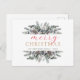 Invierno Rústico Feliz Navidad con Dusty Blue, Green y Brown Greenery, Ramas de Árboles Pinos, Pinecones y un simple fondo.