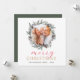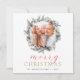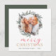 Rustic Winter Merry Christmas Photo Card con Holiday Dusty Blue, Green and Brown Greenery, Pine Tree Branches, Pinecones y fondo simple.