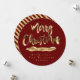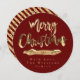 Feliz Navidad y un Feliz Año Nuevo o tu texto, Elegante Burgundy Rojo y Dorado, Texto de Hoja de Oro Falso y Rayas en Fondo Negro, Letra Moderna, Tarjeta de Navidad Circular Chic