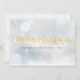 Tarjeta de vacaciones de Feliz Navidad con elegante letra dorada que incluye copos de nieve cayendo sobre un fondo nevado. Personalice añadiendo el nombre de su familia y el año. Puede agregar un mensaje de temporada en la parte posterior o, si lo prefiere, dejarlo en blanco simplemente eliminando el texto. Diseñado por Thisisnotme©